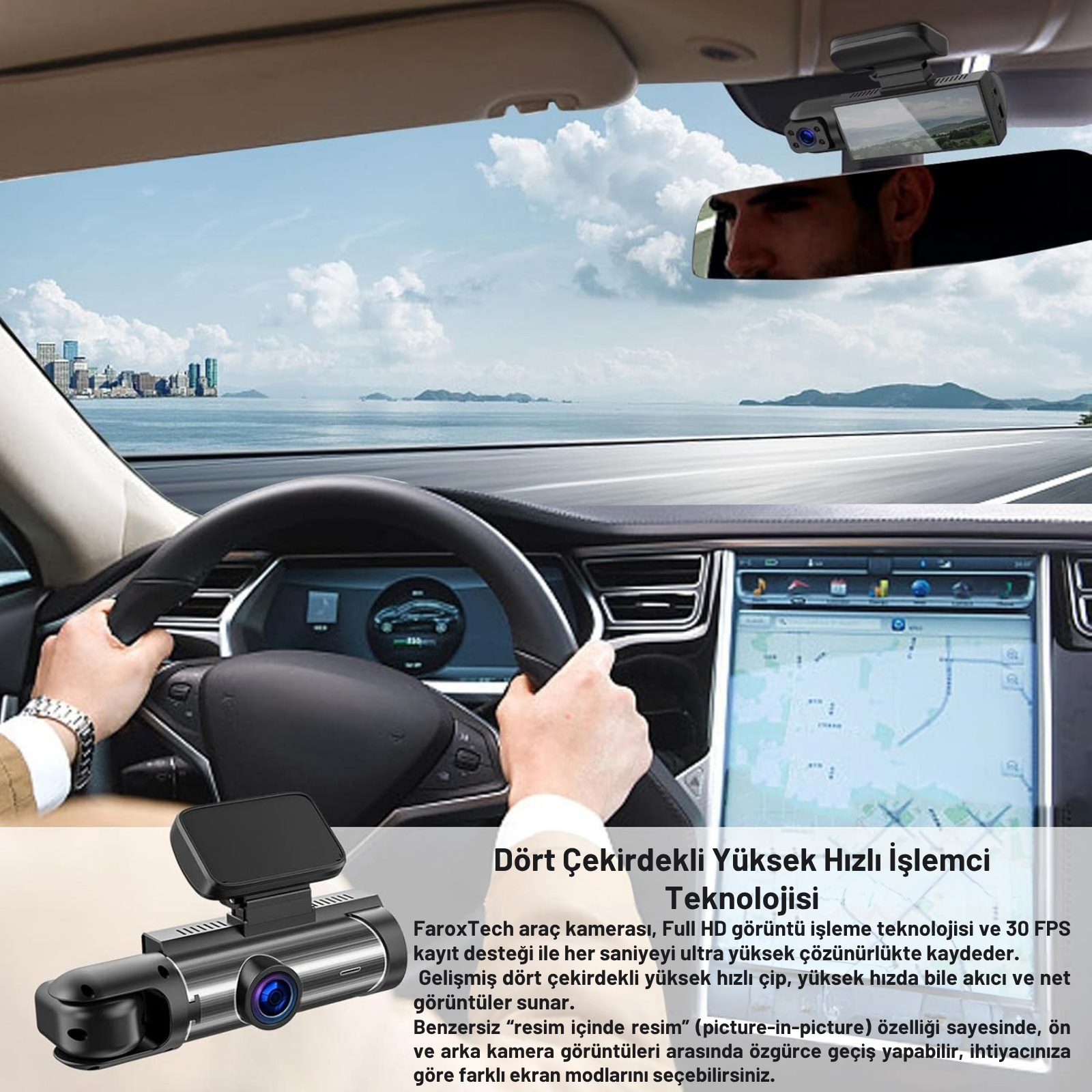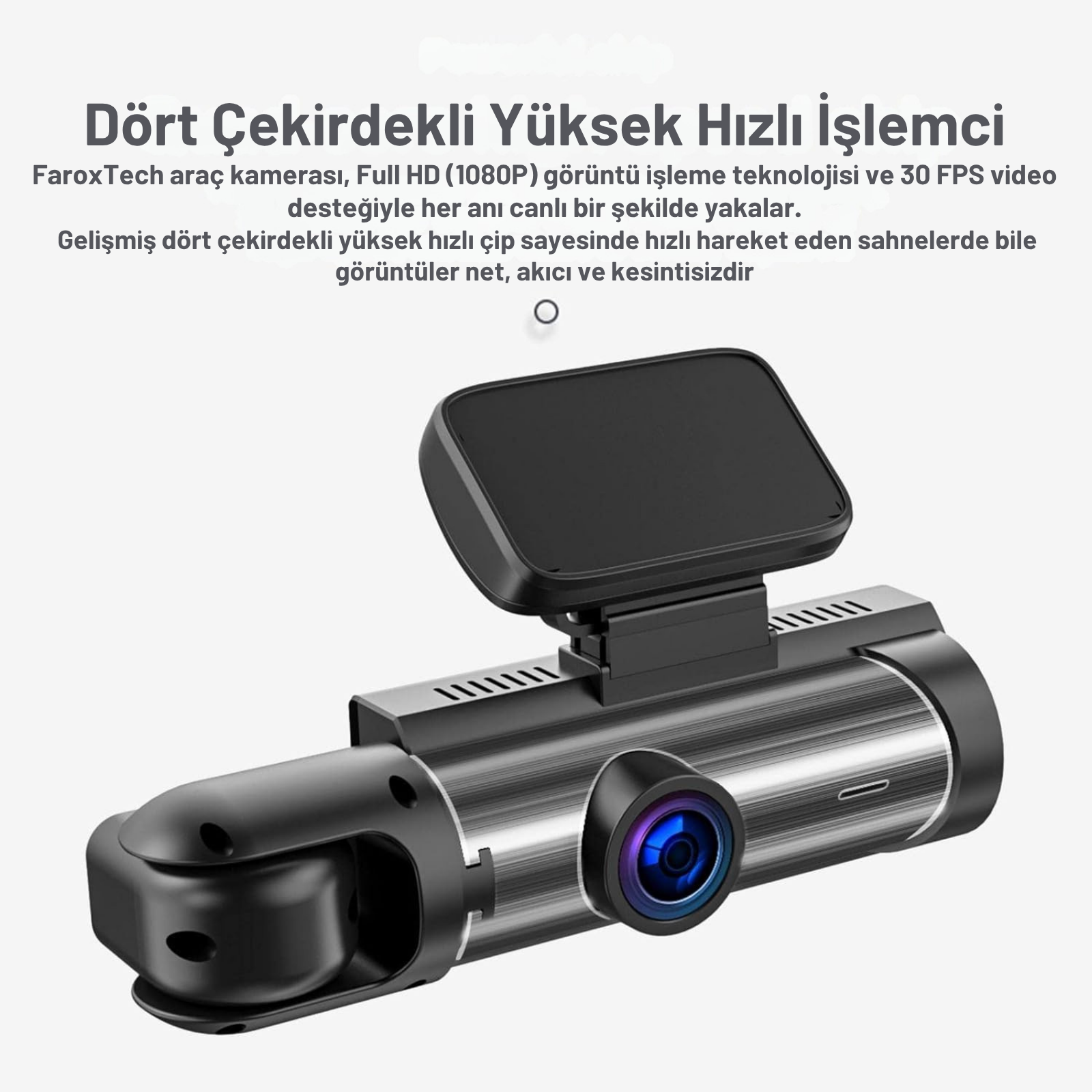 Gece ve gündüz her anı net kaydeden FaroxTech, Full HD (1080P) çözünürlük akıcı video ve dört çekirdekli yüksek hızlı işlemci ile sürüş güvenliğinizi bir üst seviyeye taşır. Gelişmiş gece görüş lensi düşük ışıkta dahi detayları yakalar.